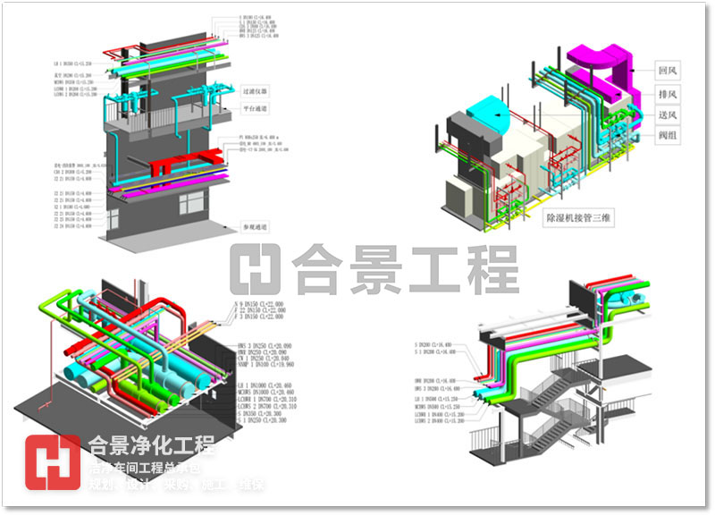BIM 技術(shù)可應(yīng)用于工程項(xiàng)目規(guī)劃、設(shè)計(jì)、施工、改建、運(yùn)維等范圍,為產(chǎn)業(yè)鏈貫通、工業(yè)化建造和建筑創(chuàng)作提供技術(shù)保障。合景智慧建設(shè)(廣東)有限公司在潔凈廠房工程建設(shè)中,以BIM技術(shù)為全周期模擬,對工程全局,即潔凈環(huán)境、人流物流、暖通、電氣工程、整廠能耗、質(zhì)量、安全等方面提供方案優(yōu)化和科學(xué)決策提供依據(jù),與各專業(yè)協(xié)同工作、項(xiàng)目的虛擬建造和精細(xì)化管理,為工業(yè)潔凈室建設(shè)提質(zhì)增效、節(jié)能環(huán)保創(chuàng)造條件,虛實(shí)結(jié)合,賦能項(xiàng)目,打造交鑰匙項(xiàng)目。